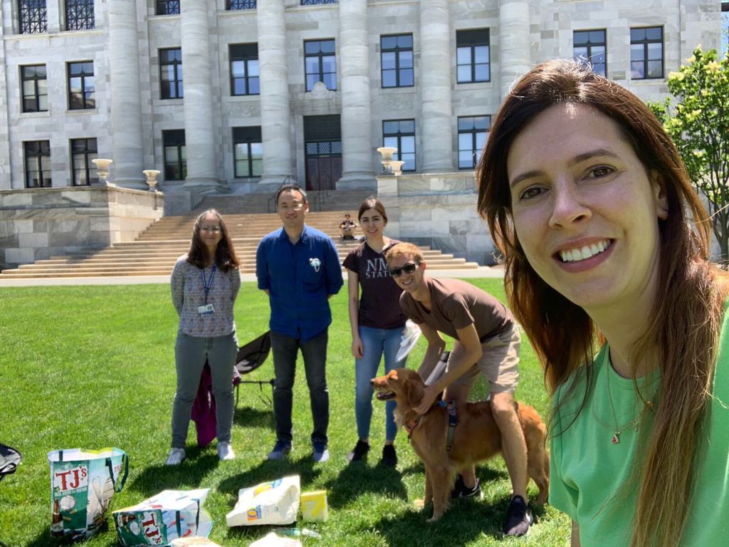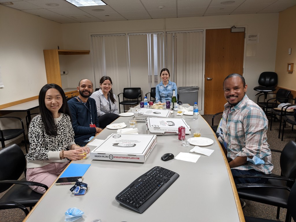 Our first remote lab meeting in March while we all social distance. Note that Oakley has come to this lab meeting as well! She is a lot bigger now.Former Watnick lab postdoc and current Assistant Professor at Qatar University, Dr. Layla Kamareddine wins first prize in for her poster: Between Immunity, Metabolism, and Development: A story of a Fly Gut! at the Annual Research Forum & Exhibition November, 2020; Doha, QatarWeekly zoom meeting with Jake and Oakley; Oakley displays excellent listening skills.Finally some good weather! Josh, Jake, Bat, Fernanda, Daniela and everyone’s favorite-Oakley April 2021